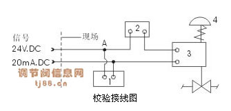 直接由調(diào)節(jié)器或手操器(對需隔離離柵的回路,還需經(jīng)輸出安全保持器),輸出一個固定的20mA DC電流。經(jīng)電阻箱分流后,就可以得到一個既安全又可靠的4~20mA DC信號。在現(xiàn)場校驗(yàn)定位器時,其接線如圖所示。