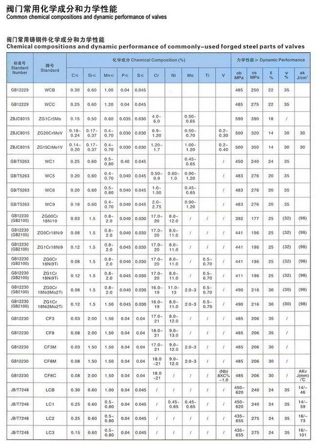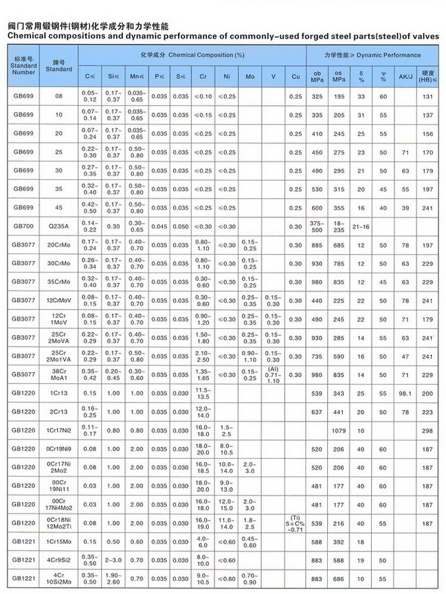 閥門常用鍛鋼件(鋼材)化學(xué)成分和力學(xué)性能